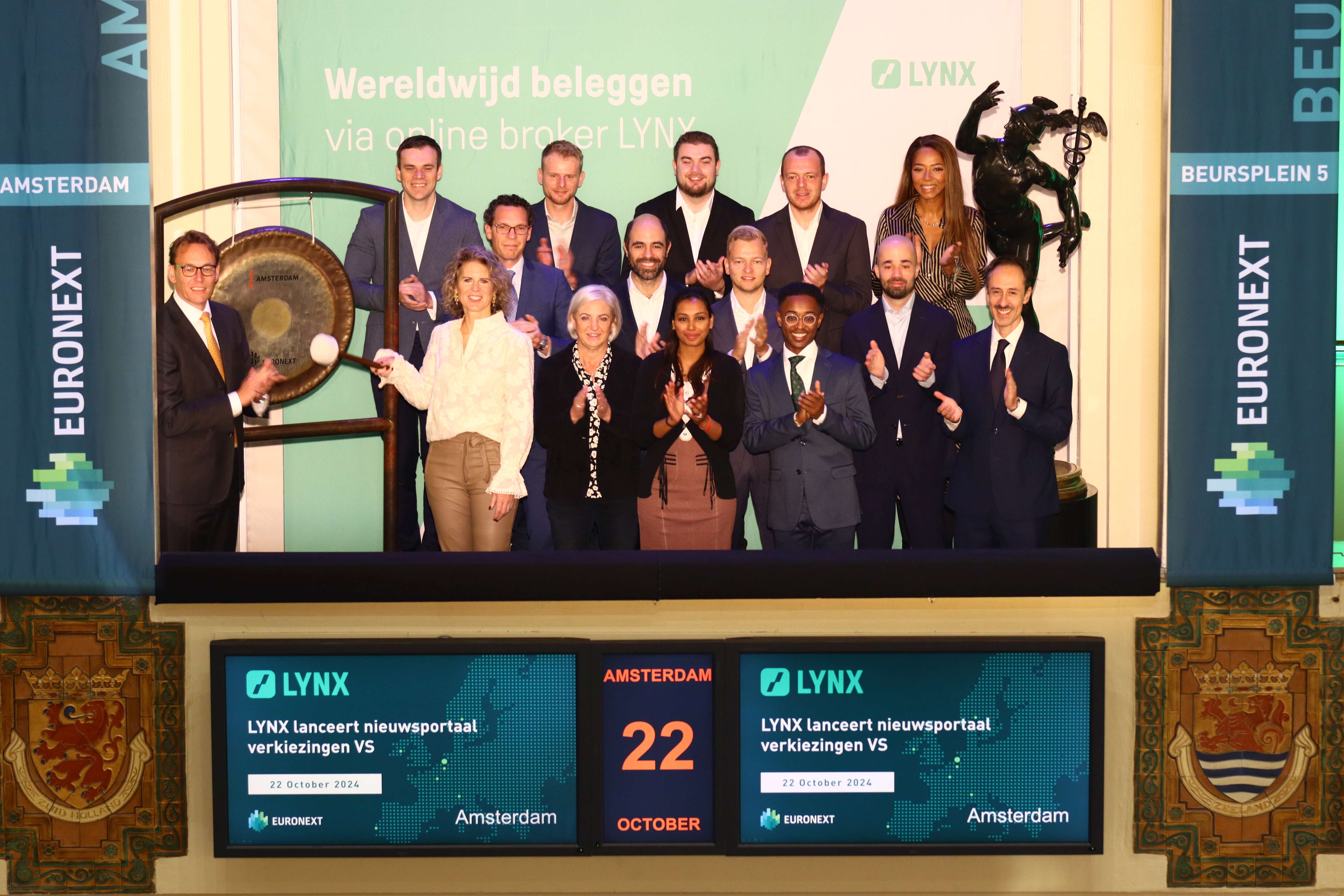 To celebrate this launch, the gong was sounded by Ellen van Ginkel, CEO of LYNX. The group was warmly welcomed by Walter Hendriks, Chief Compliance Officer at Euronext Amsterdam.