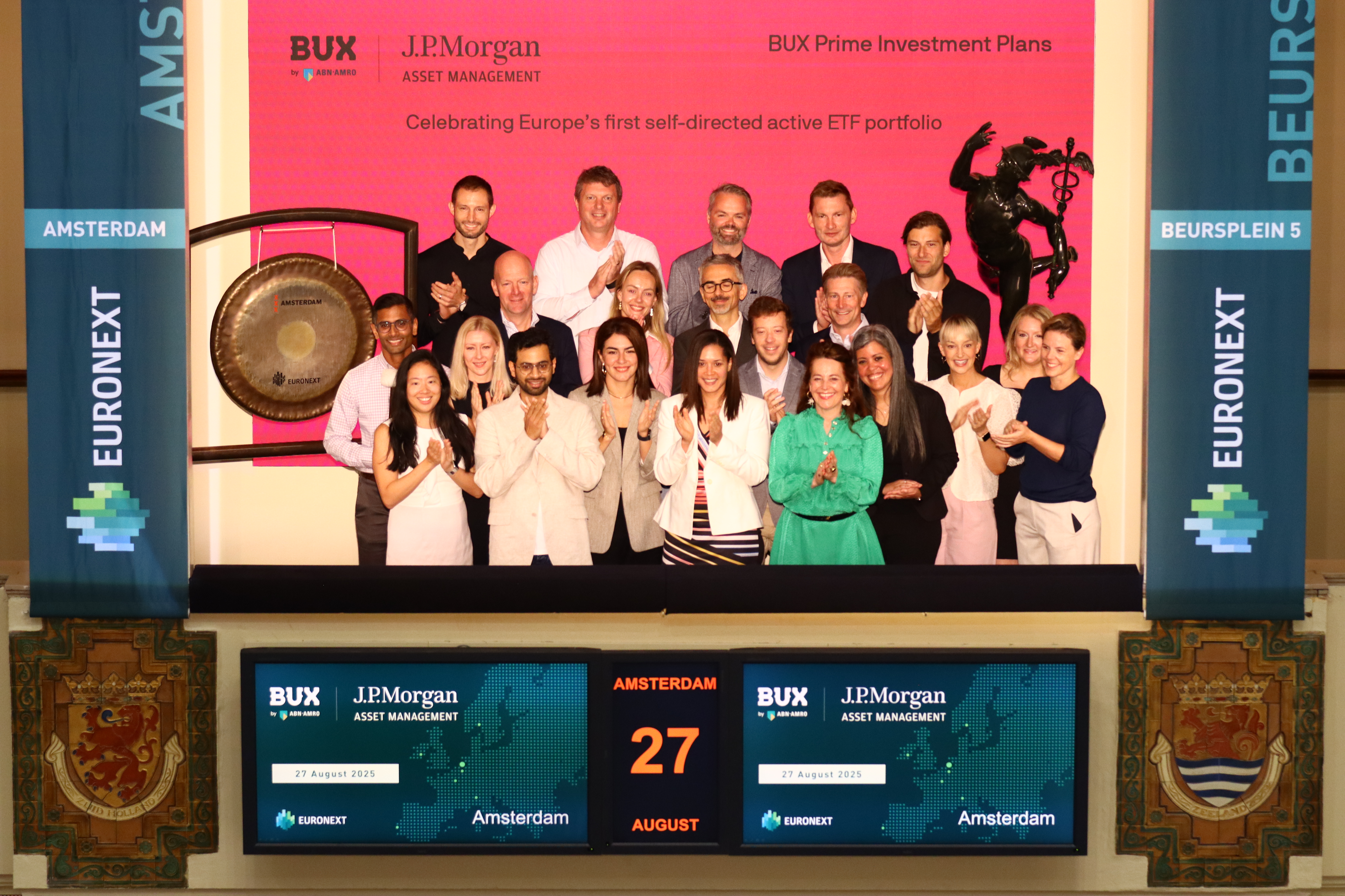 The gong ceremony was hosted by Leon Mensink, Derivatives Sales Associate at Euronext Amsterdam, with Aditya Pasumarty, Chief Product Officer of BUX, sounding the gong.