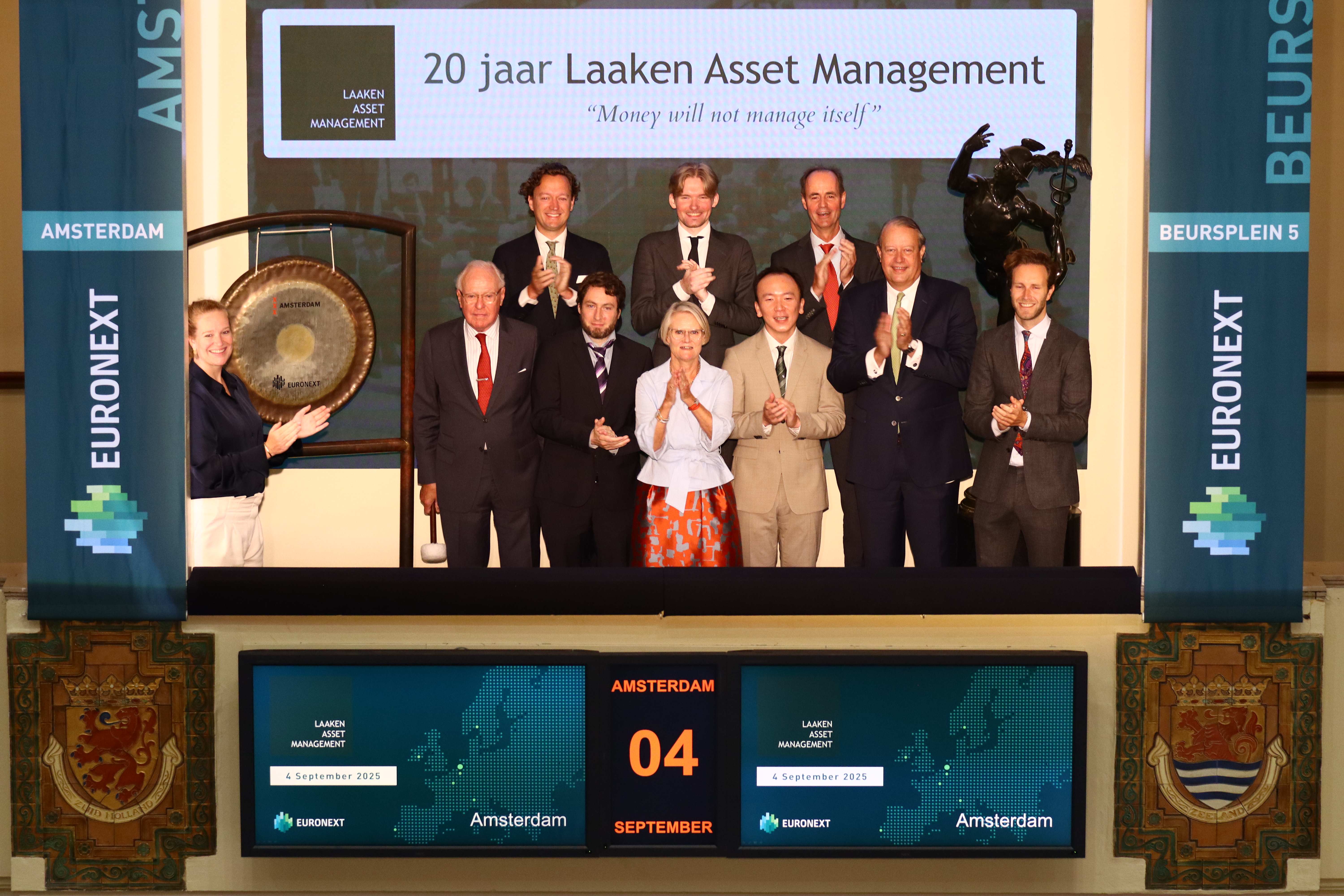 To mark its 20th anniversary, Jolmer D. Gerritse, founder and statutory director of Laaken, opened a new trading day this morning with a traditional gong ceremony.