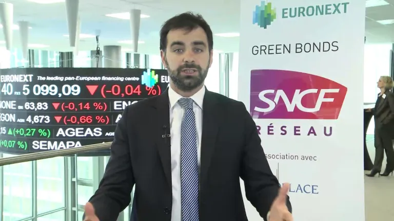 Après le grand succès rencontré par l'emprunt obligataire inaugural ‘Green Bond’ de 900 millions d’euros à 15 ans réalisé fin 2016, SNCF Réseau a levé en mars sur le marché 1 milliard d'euro supplémentaire à 17 ans grâce à une deuxième émission ‘Green’. Tant pour célébrer ce succès que pour expliquer à quel point le développement durable fait partie intégrante des valeurs de SNCF Réseau, Patrick Jeantet, président de SNCF Réseau fera une brève allocution, avant de symboliquement sonner la cloche d'ouverture du marché.