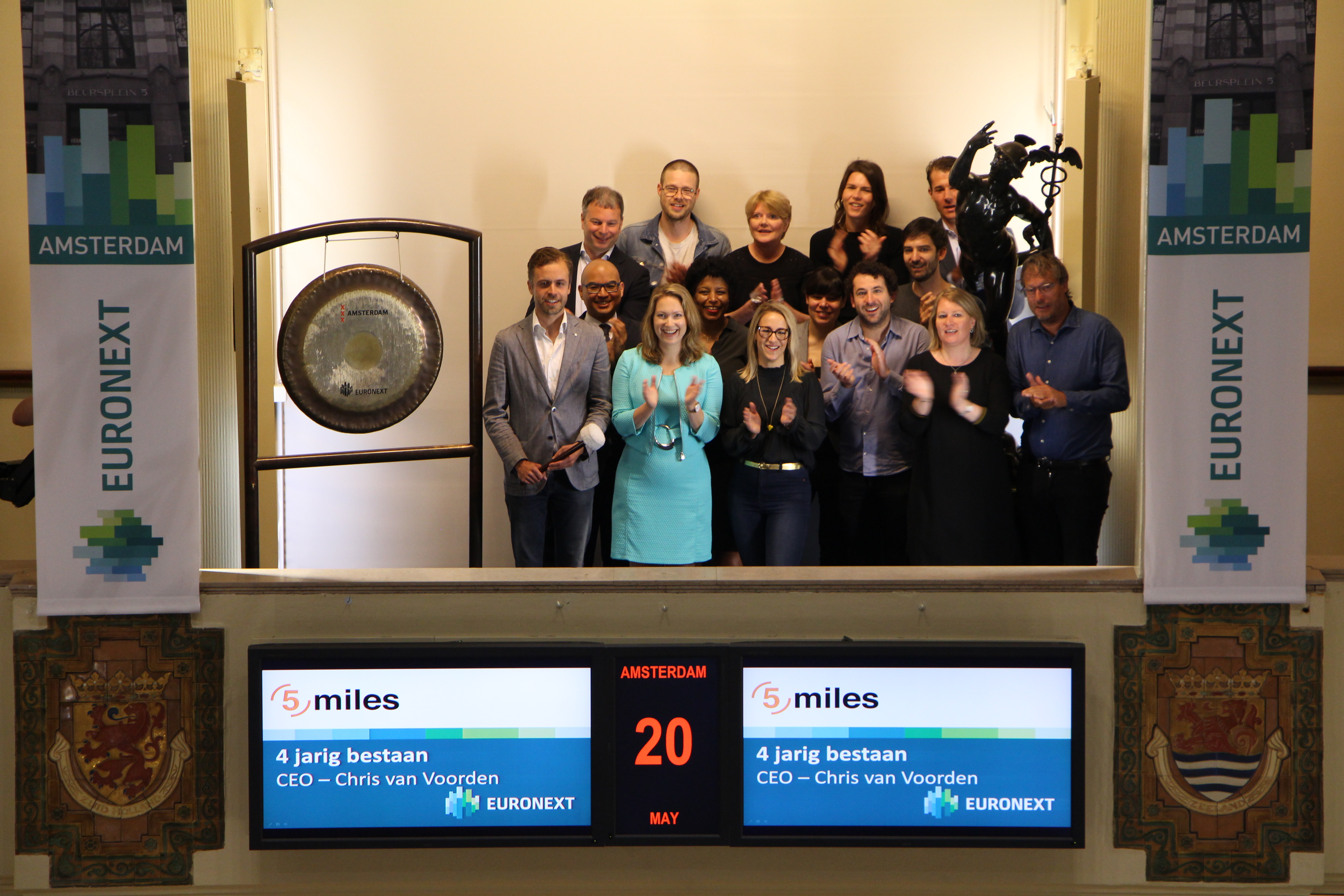5miles celebrates its four-year anniversary. Chris van Voorden, the CEO, sounds the gong.