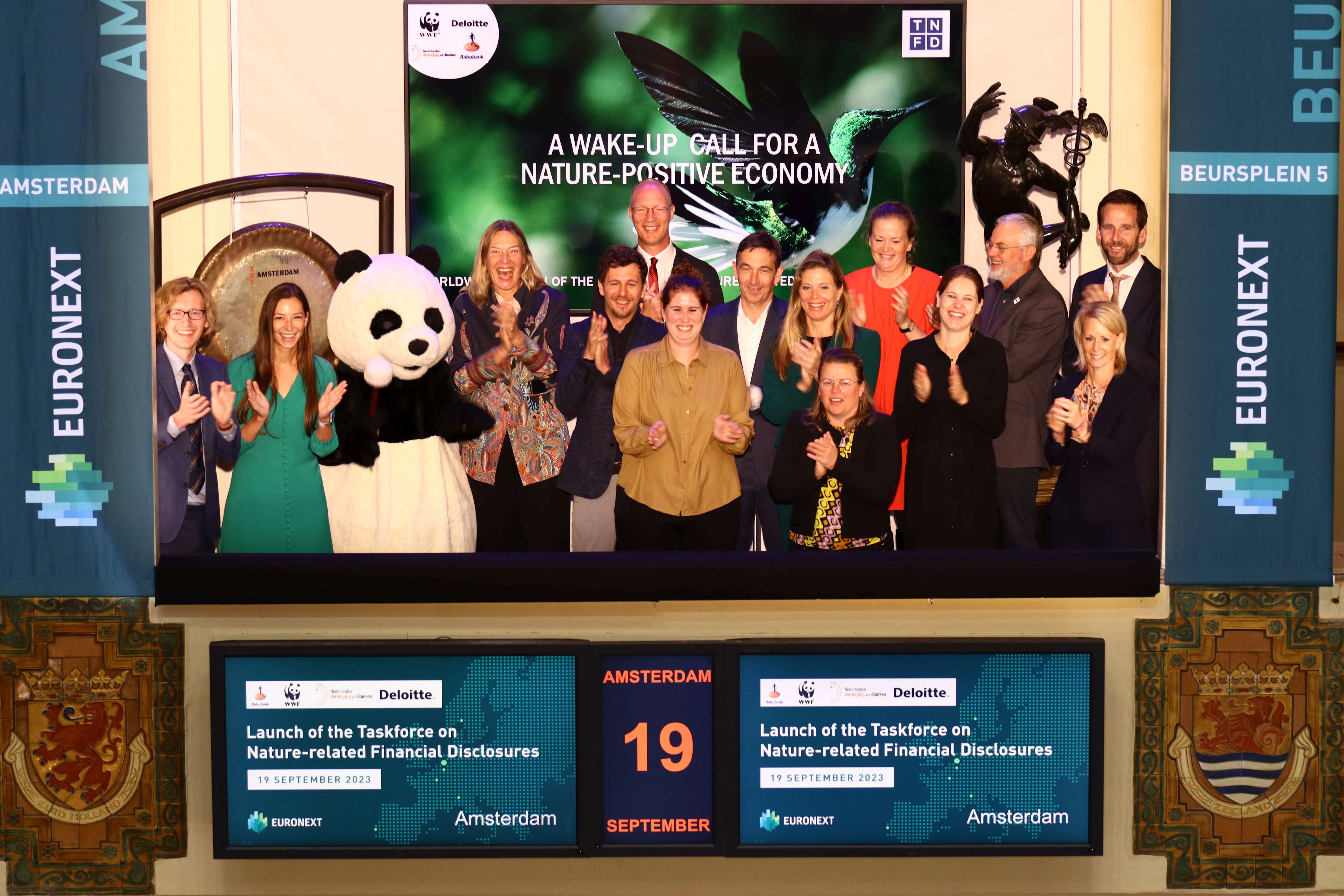 The Dutch TNFD consultation group including the World Wildlife Fund, Deloitte, Rabobank and the Dutch Banking Association came together for a Gong ceremony. T