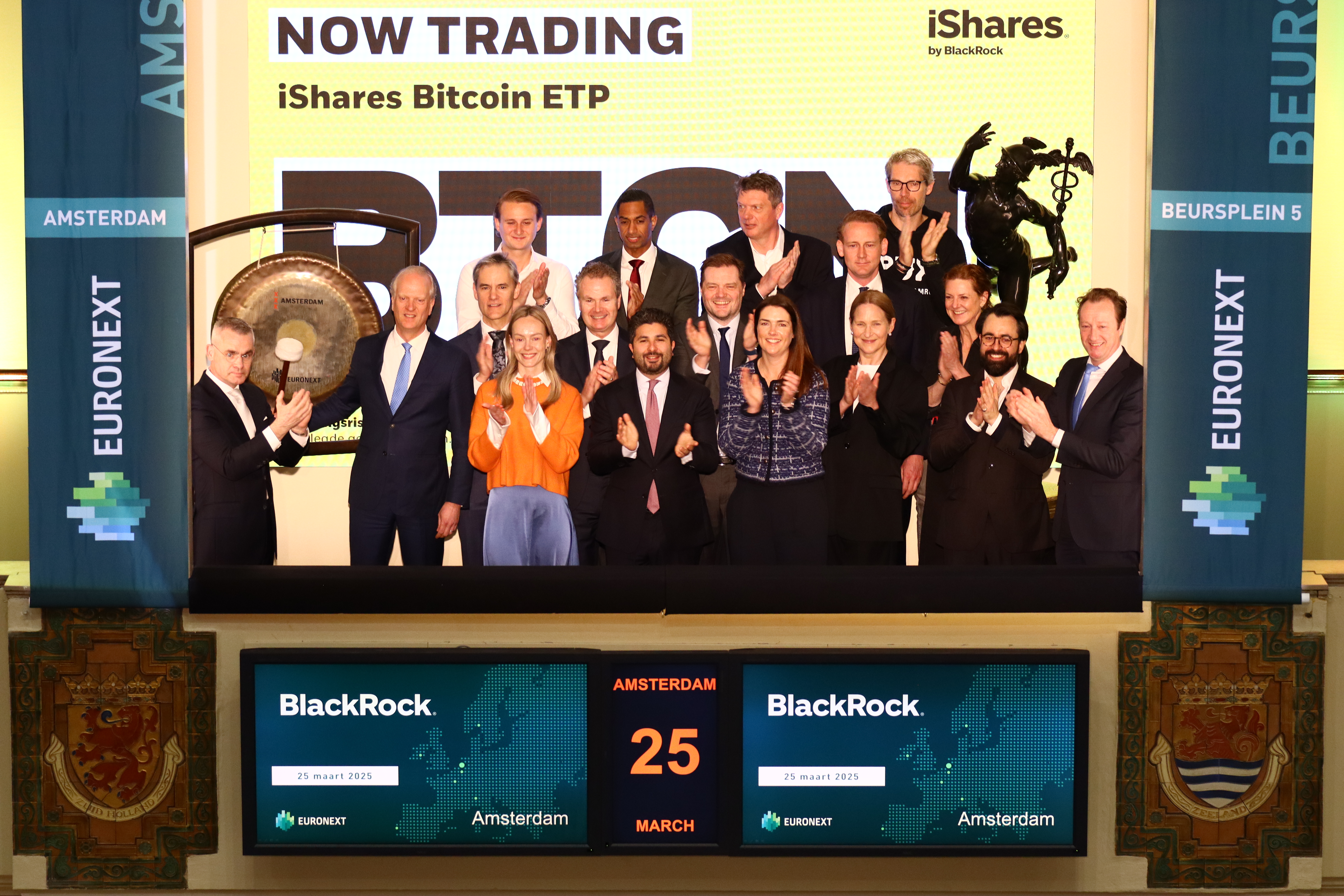 Kirst Kuipers, Head of Institutional ETF Sales EMEA at BlackRock sounded the gong this morning in the presence of René van Vlerken, CEO of Euronext Amsterdam and Paul Noordam, Senior Manager Sales and Product Management Cash Equities & Derivatives at Euronext Amsterdam.