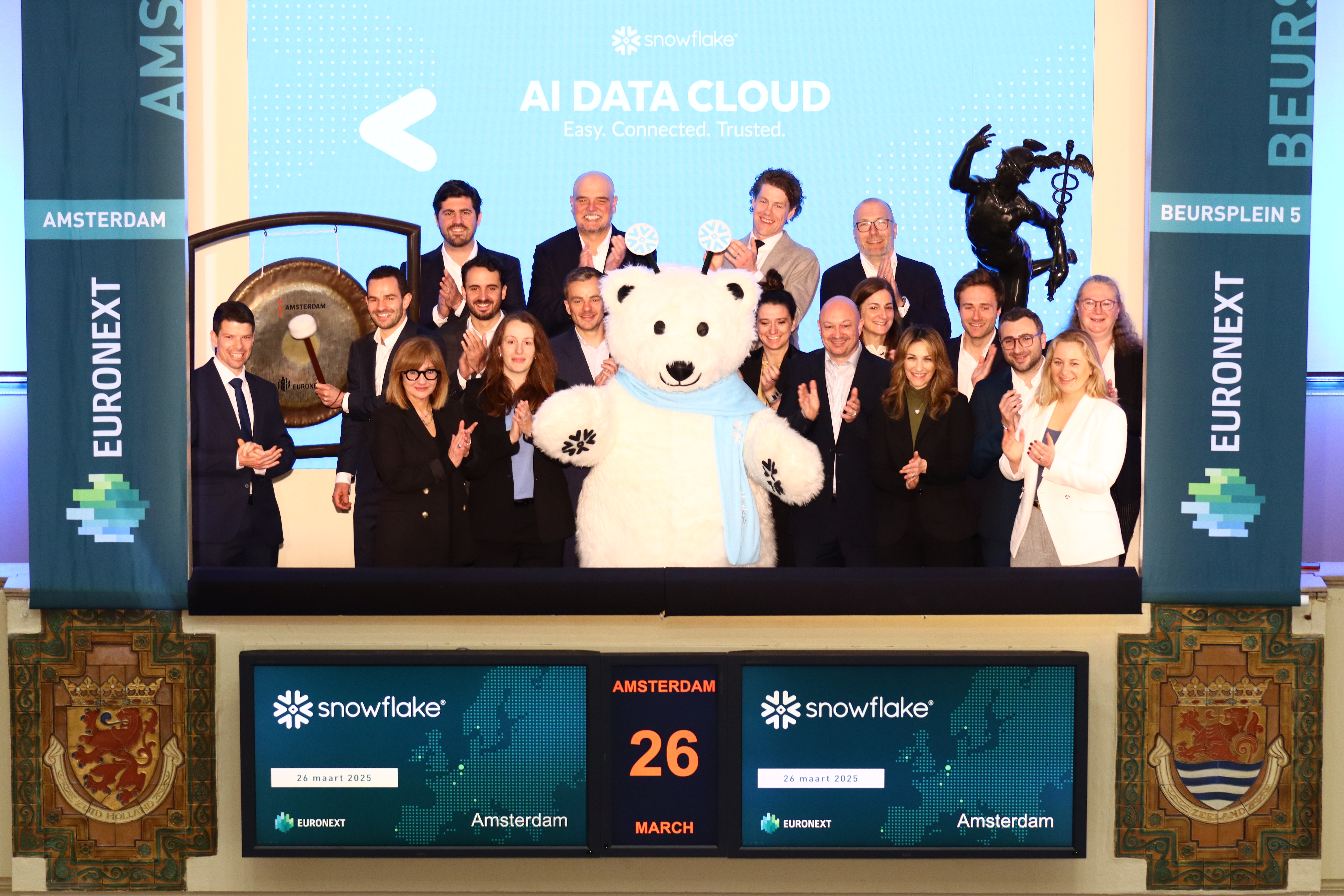 Snowflake Computing Netherlands B.V. rang the bell this morning to open a new day of trading at Euronext Amsterdam, marking a significant milestone in the collaboration between the two companies.