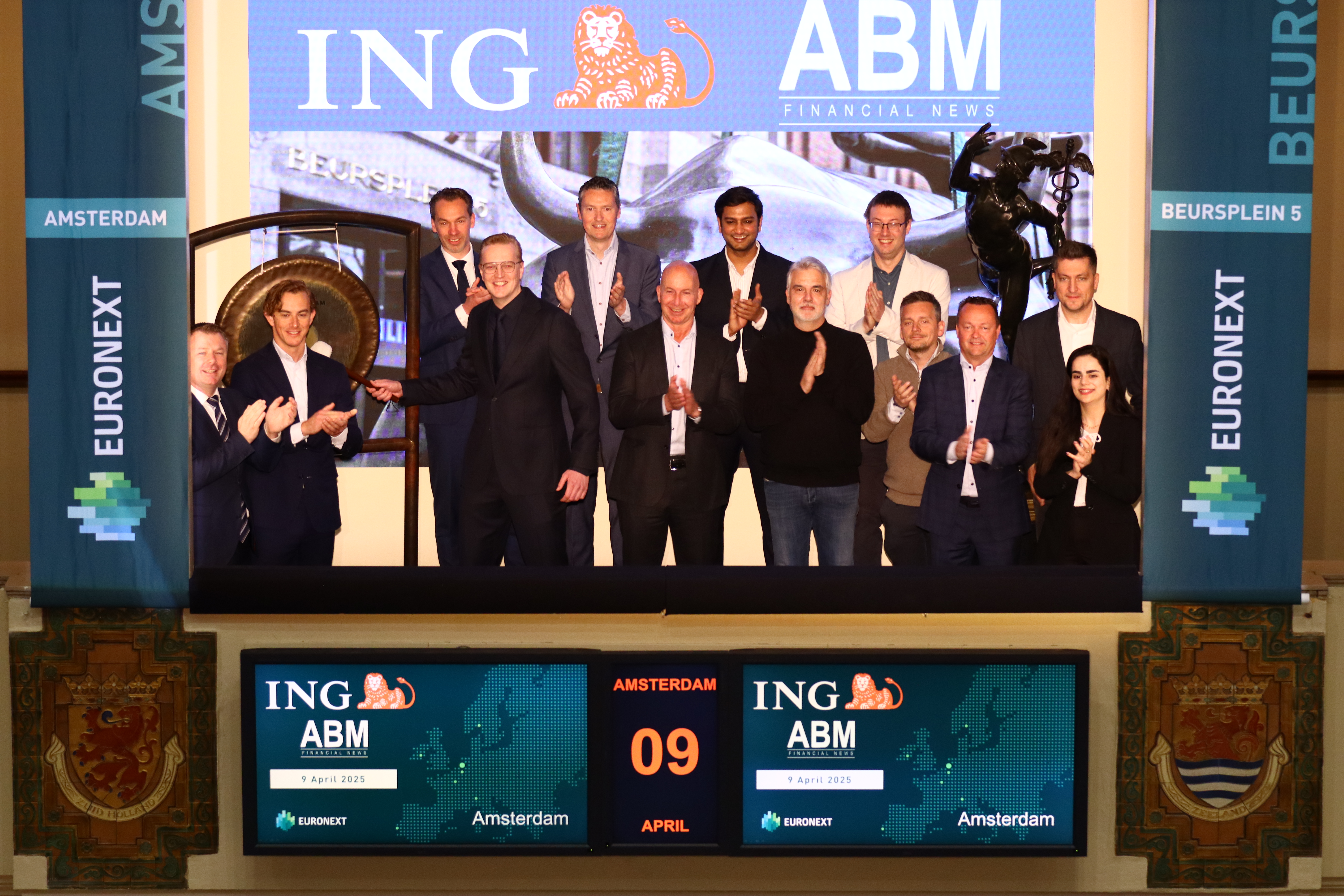 Jeroen Verhoeff, Product Owner Execution only ING, and Merwin Bisseling, CEO ABM Financial News, sounded the gong together to mark the occasion. They were welcomed by Robert Bakker, Head of Issuer Services Operations, Euronext Market Services.
