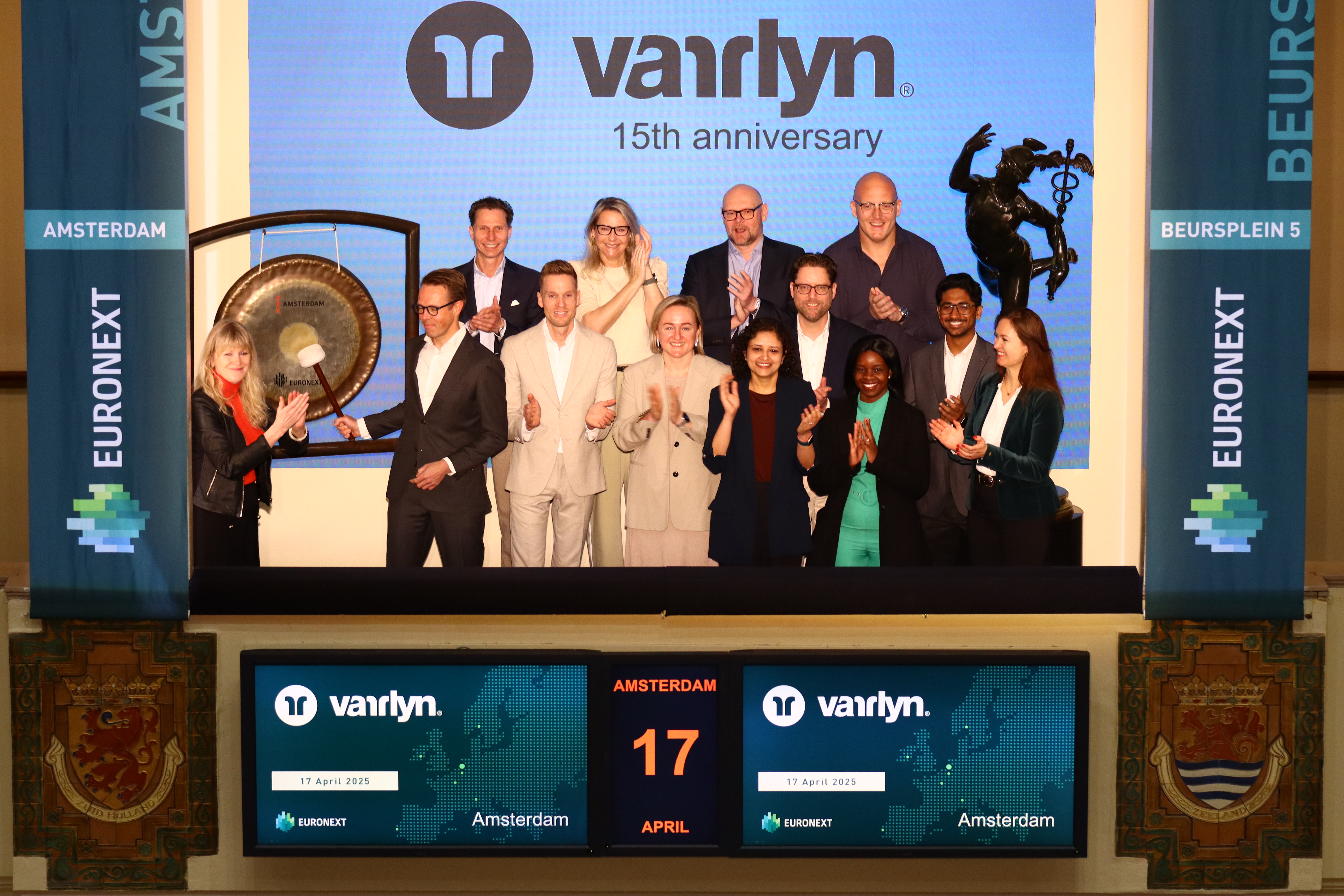 To mark the company's 15th anniversary, the gong was sounded this morning by Stephan van der Windt, Director of Varrlyn.