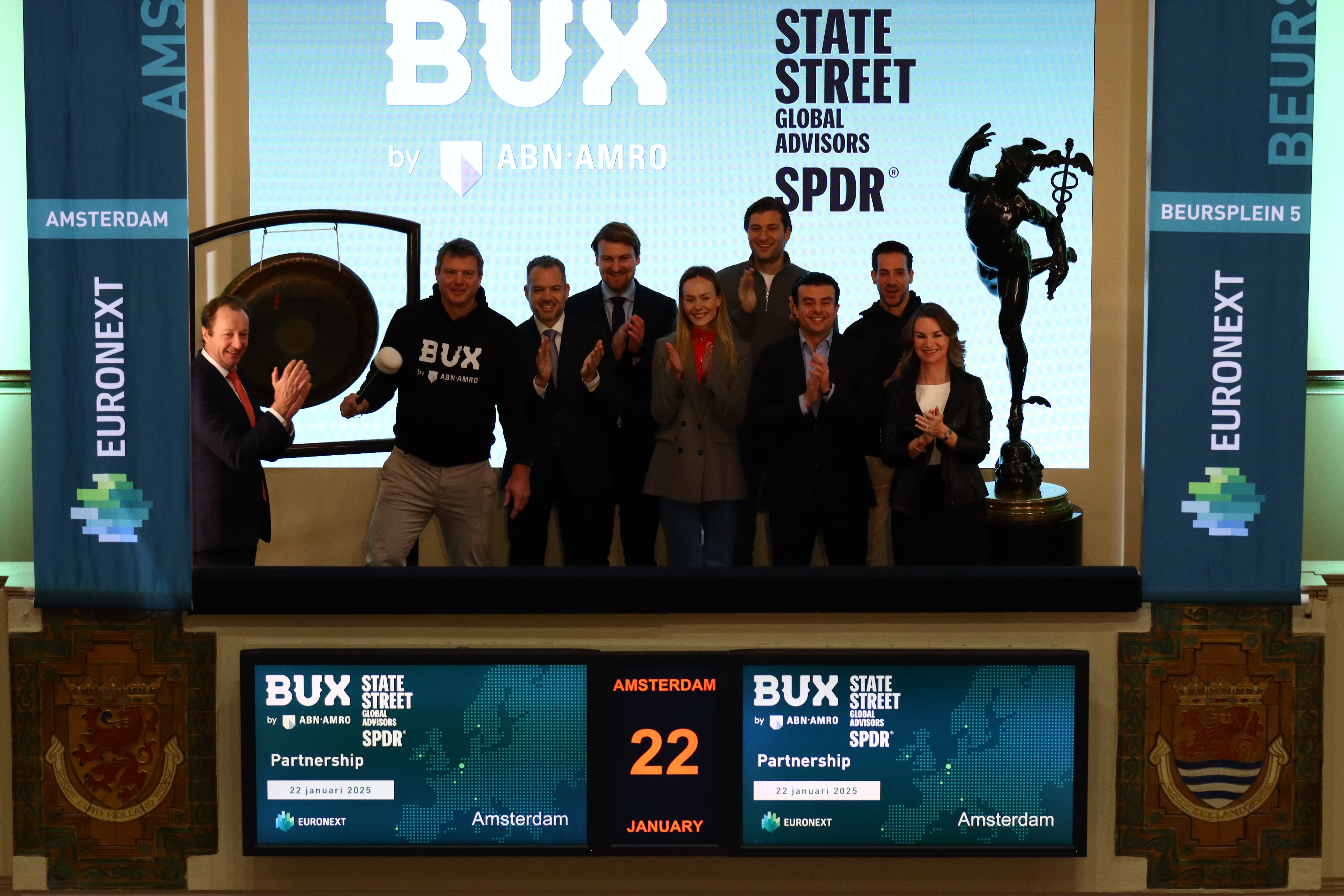 The launch of this new collaboration was celebrated at Beursplein 5, where the gong was sounded by Niek van Rens, COO at BUX. The group was welcomed by Paul Noordam, Senior Manager Sales and Product Management Cash Equities & Derivatives at Euronext Amsterdam.
