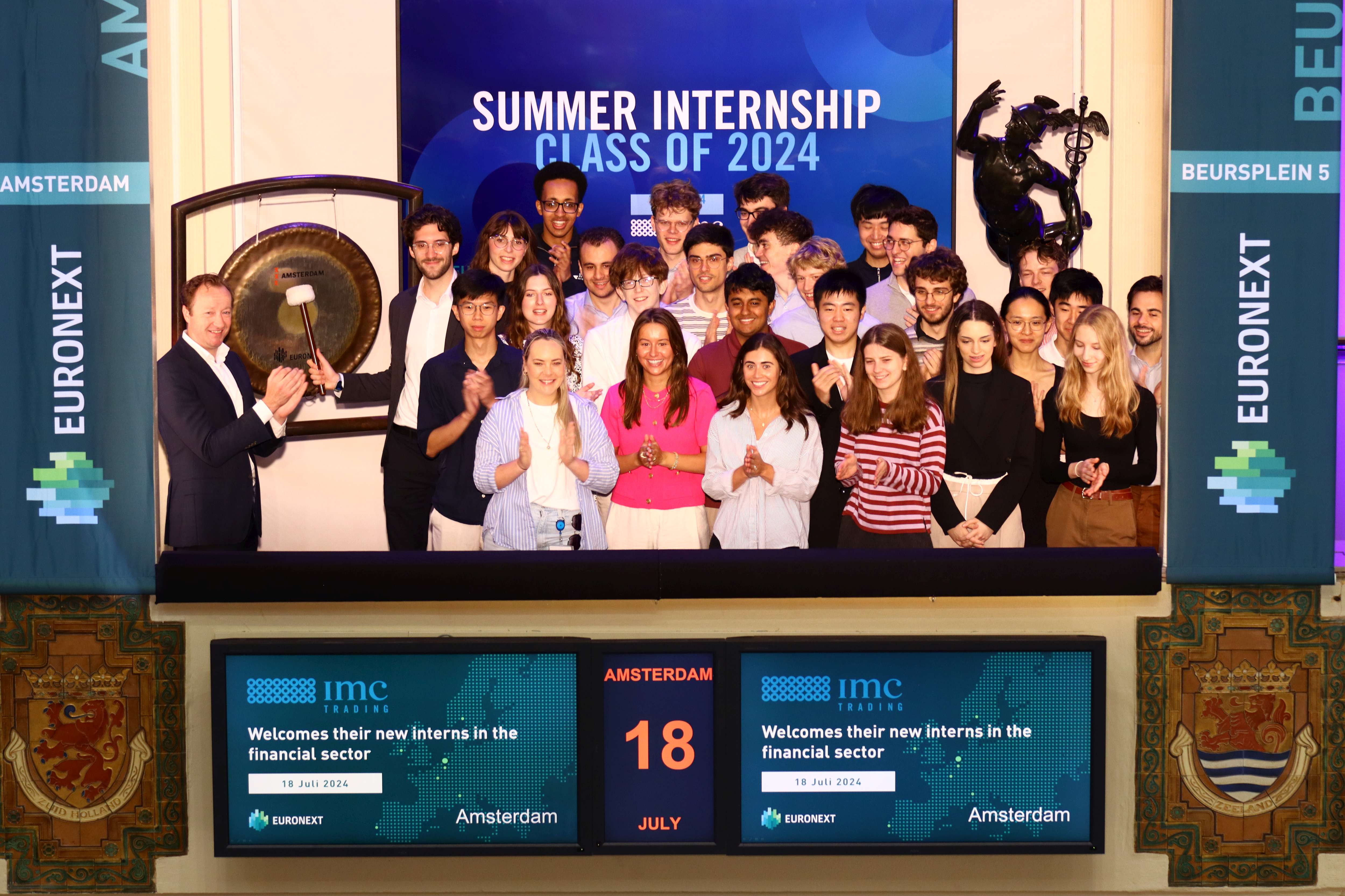 Every year IMC welcomes new summer interns. IMC is happy to introduce these young professionals to the financial industry and lead them at the beginning of their careers. To celebrate this, Luca Pantea, Machine Learning Intern, sounded the gong this morning.