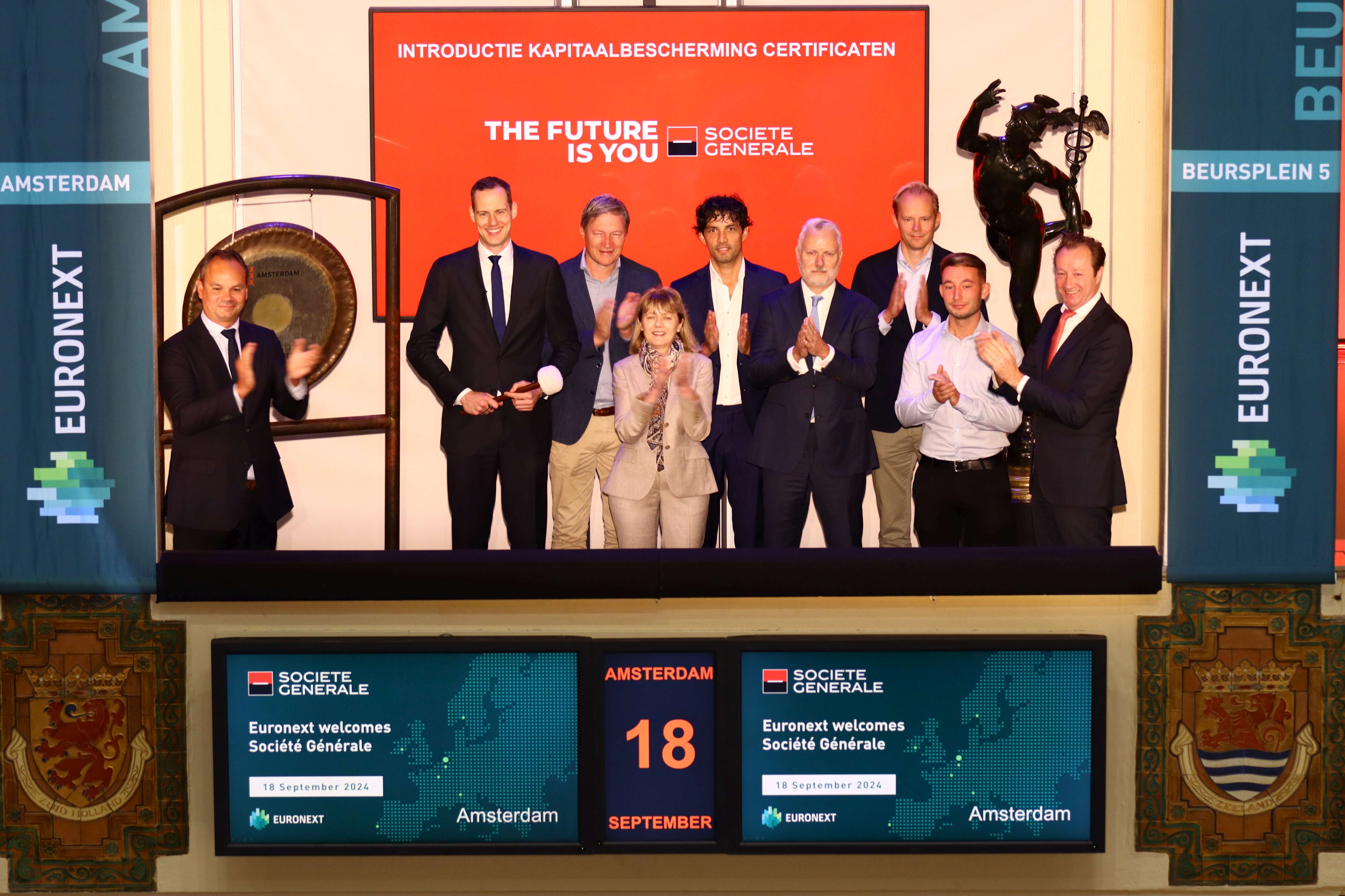 To celebrate this milestone, the gong was sounded this morning by Christophe Cox, Vice President Listed Structured Products Netherlands & Belgium at Société Générale.