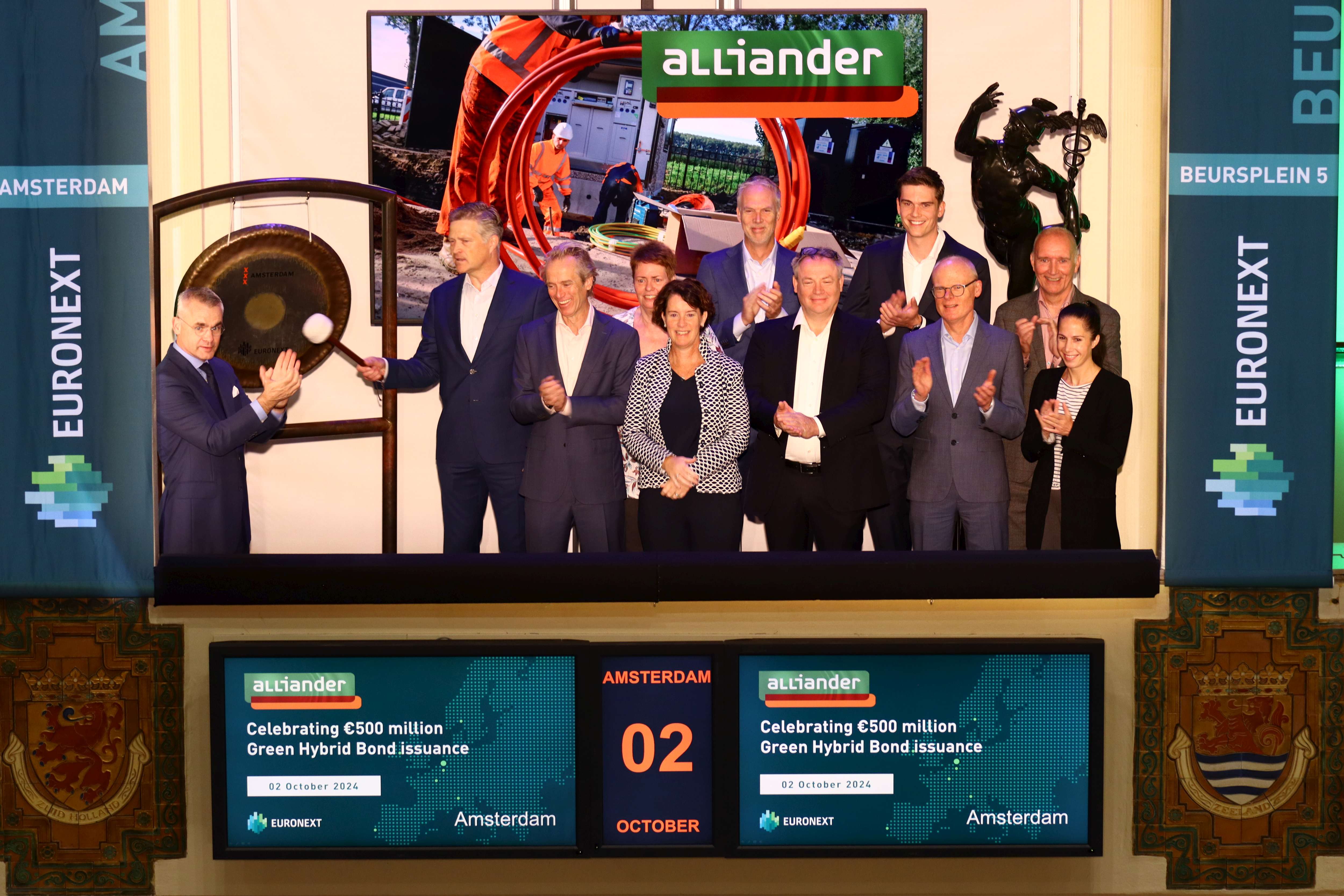 He and his team were welcomed by René van Vlerken, CEO of Euronext Amsterdam.2413649708d779b-d31c-4c60-b703-b9ae3d02e250Alliander celebrates €500 million Green Hybrid Bond issuance