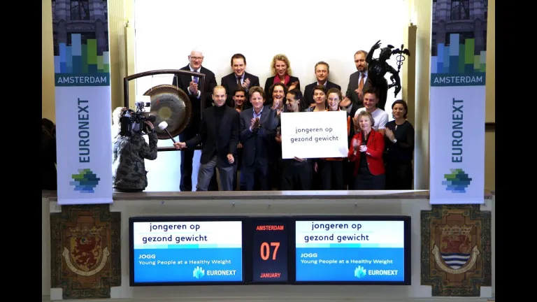Jongeren Op Gezond Gewicht opent de handel om aandacht te geven aan nieuwe gezonde voornemens in 2016. Ambassadeur Erben Wennemars luidt de gong in het gezelschap van het bestuur, wethouders, bedrijfspartners, buurtsportcoaches en landelijke JOGG-ambassadeurs prins Pieter-Christiaan van Oranje en Juvat Westendorp.