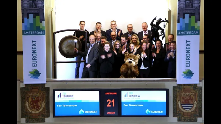 For Tomorrow, het fondsbeleggen onderdeel van Today’s Groep, bestaat dit jaar vijf jaar en viert dat met het openen van de handel. Samen met zijn team luidt Algemeen Directeur Cees Smit de gong.