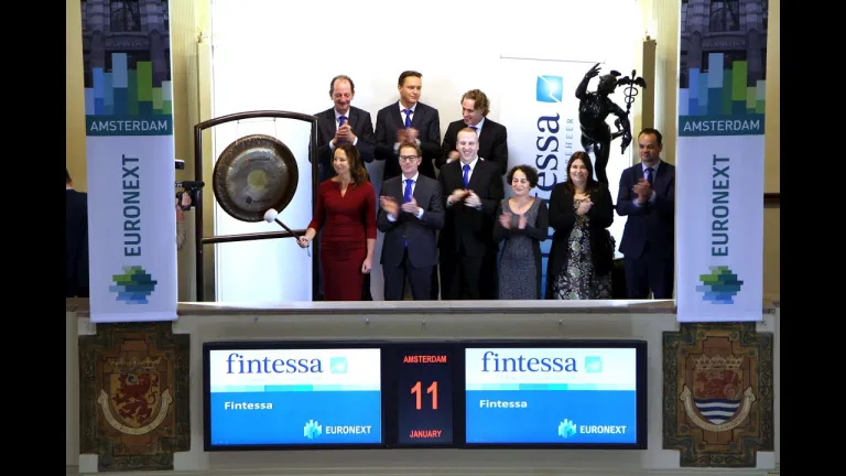 Fintessa luidt het nieuwe jaar in met een bezoek aan Beursplein 5. Algemeen directeur Martine Hafkamp luidt de gong op de Amsterdamse beurs.