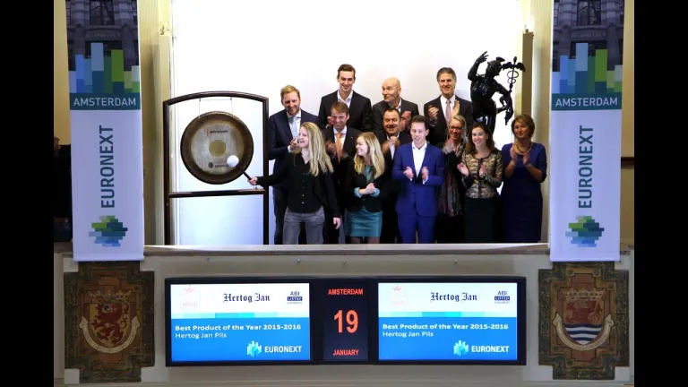 Vorige maand werden de winnaars van de tweede editie van de consumentenverkiezing Beste Product van het Jaar in Nederland bekend gemaakt. Hertog Jan Pils, geproduceerd door het aan Euronext Brussel genoteerde AB InBev (ticker symbol: ABI), heeft de titel overall winnaar Beste Product van het jaar 2015-2016 behaald. AB InBev opent ter ere van het behalen van deze prijs de handel op Beursplein 5.