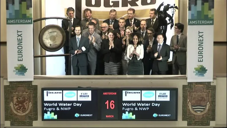 Met een slag op de gong openen Fugro en het Netherlands Water Partnership (NWP) de handelsdag ter ere van Wereld Waterdag. Het thema van de Wereld Waterdag 2015 is ‘Water & duurzame ontwikkeling’.