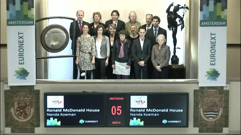 Nanda Koeman, manager van het huis, opent de beurshandel en roept bedrijven op ‘vriend’ te worden van Ronald McDonald Huis AMC Amsterdam. De huizen ontvangen geen overheidssteun en zijn volledig afhankelijk van sponsors en donateurs.Voor een jaarlijkse bijdrage van € 1.500 mogen bedrijven zich drie jaar lang vriend noemen.