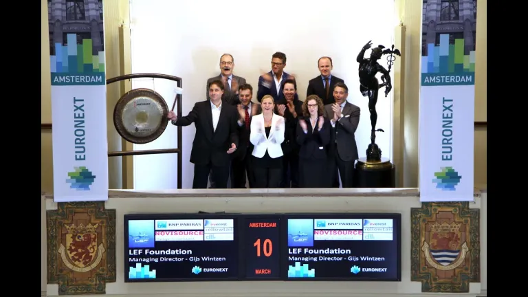 LEF heeft samen met de financiële branche een mbo-lesprogramma opgezet om jongeren in de leeftijd van 15-22 jaar te leren verantwoordelijk met geld om te gaan. LEF hielp in de afgelopen jaren al meer dan 8000 jongeren bij het omgaan met de kansen en de risico’s van geld. LEF wordt mogelijk gemaakt door steun van partners, waaronder BNP Paribas, De Lage Landen, Novisource, Everest, Yellowtail, Hemels van der Hart, Nationale Hypotheek Garantie, Dukers & Baelemans en Welten. Directeur van LEF, Gijs Wintzen, luidt de gong.