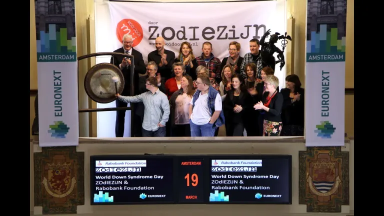 Ter ere van Wereld Down Syndroom Dag lanceren de Rabobank Foundation en stichting ZOdIEZiJN de nieuwe webwinkel mooidoormij.nl. Beide partijen investeren in de zelfredzaamheid van mensen en maken het samen mogelijk dat mensen met een (verstandelijke) beperking in dagbestedingsateliers van zorginstellingen in heel Nederland een zinvolle dagbesteding krijgen. In de ateliers worden originele en duurzame producten ontworpen en verkocht, in samenwerking met jonge Nederlandse ontwerpers. Hiervoor is het label ‘Mooi door mij’ ontwikkeld. De producten zijn vanaf 19 maart te koop in de webwinkel. Maker van ‘Mooi door mij’ producten, Bono Kloek, luidt de gong.