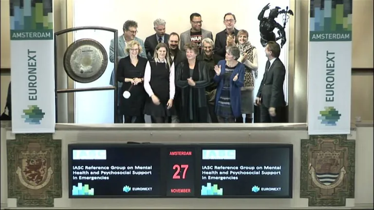 De directeuren van Antares Foundation, Healthnet TPO, War Child, War Trauma Foundation en Nederlandse geestelijke gezondheidsexperts werkzaam bij UNHCR, UNICEF en WHO vragen met het luiden van de gong aandacht voor de noodzaak van psychosociale hulp tijdens noodhulp.