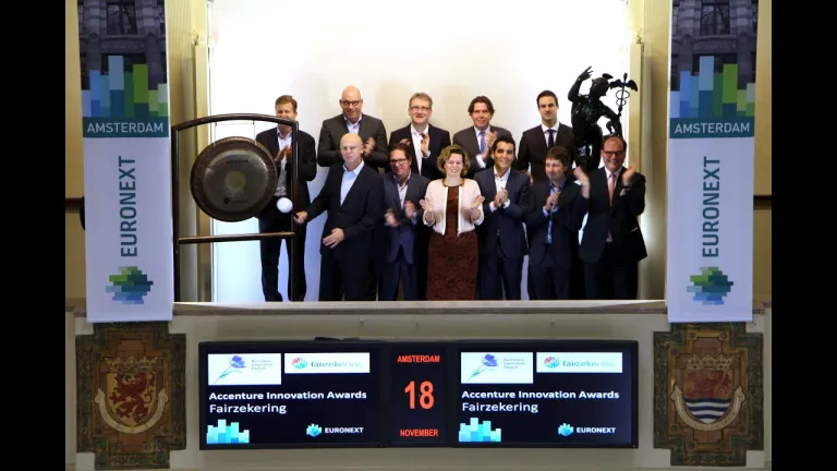 Met de Innovation Awards geeft Accenture bedrijven en organisaties de erkenning die zij verdienen en bieden zij het bedrijfsleven inzicht in de nieuwste trends en ontwikkelingen in de financiële sector. Daarnaast biedt het innovators, het bedrijfsleven en investeerders een mooie gelegenheid om kennis uit te wisselen. Fairzekering biedt een lagere verzekeringspremie aan mensen die bewust veilig rijden. Onderscheidende punten zijn de toegenomen veiligheid, bewezen algoritmes die de correlatie tussen rijgedrag en schades meten en directe schademelding bij ongelukken. CEO en co-founder, Hans Gerritsen, luidt de gong.