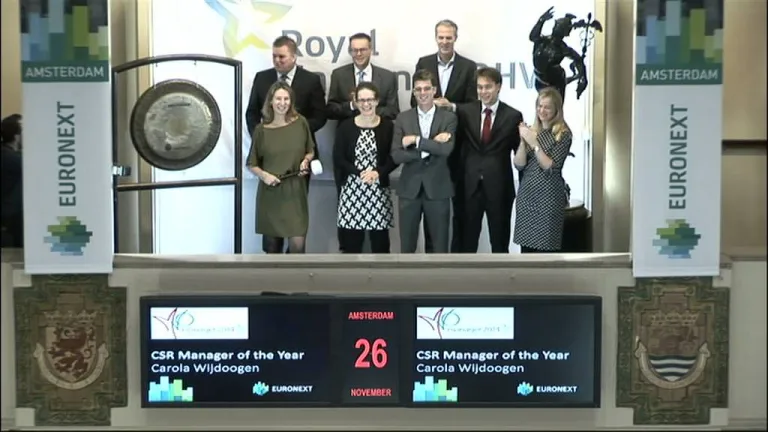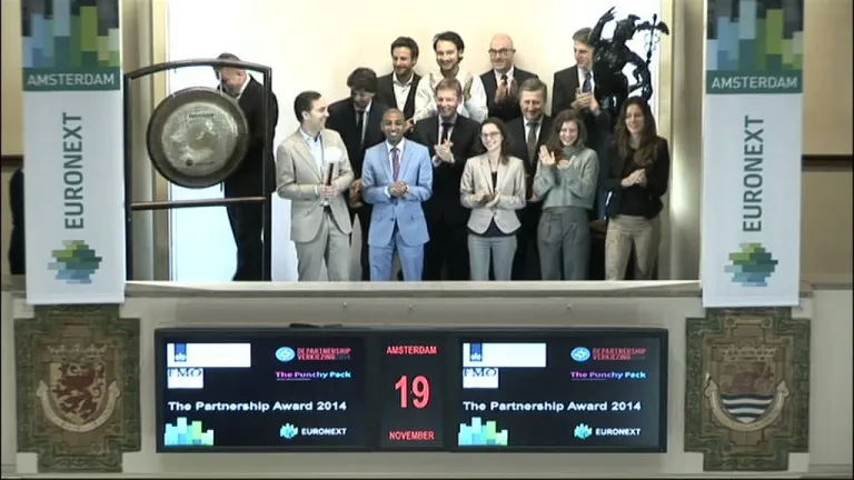 De winnaar van de ‘Best New Partnership Award 2014’, Alliander,viert de winst met een slag op de beursgong. De Partnership Verkiezing daagt Young Professionals uit door middel van partnerships een business-case in een ontwikkelingsland op te zetten met een NGO en/of overheid.