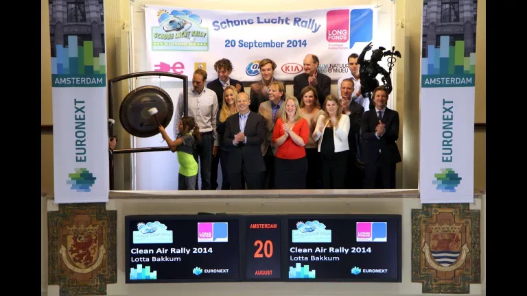 Met de gongslag vraagt de 9-jarige Lotta Bakkum, voormalig astma patiënt, aandacht voor de Schone Lucht Rally voor elektrische en plug-in hybride auto’s op 20 september.