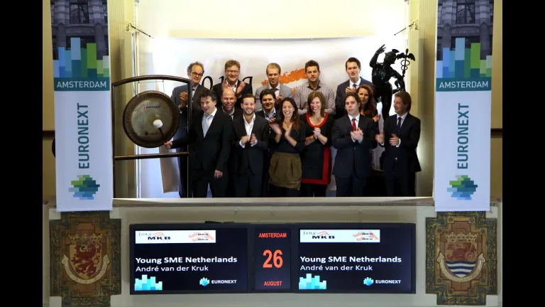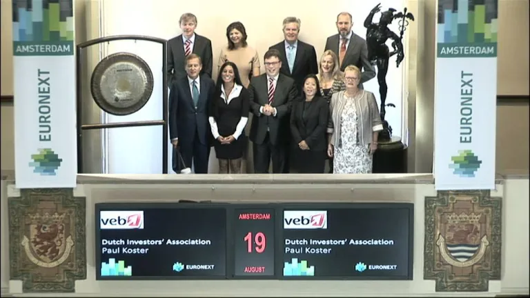 De nieuwe directeur van Beleggersvereniging VEB, Paul Koster, viert zijn aantreden met een slag op de beursgong te Euronext Amsterdam.