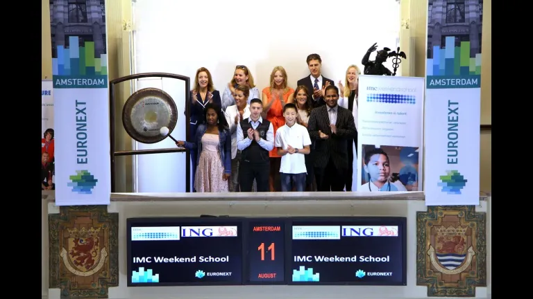 ING is al twee jaar lang één van de belangrijkste sponsors van de weekendschool. Een belangrijk onderdeel van de samenwerking is dat ING medewerkers gastlessen over leren omgaan met geld, workshops voor de alumni of algemene begeleiding verzorgen. Alumna, Candice Lepelblad, luidt de gong in het gezelschap van andere alumni en vertegenwoordigers van partner ING.