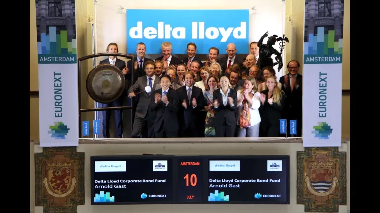 Met een slag op de gong viert Delta Lloyd de beursnotering van het Delta Lloyd Corporate Bond Fund. De beleggingsstrategie van Delta Lloyd voor bedrijfsobligaties is daarmee nu ook toegankelijk voor particuliere beleggers.