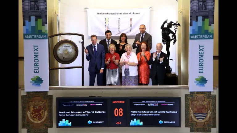 In april werd in bijzijn van minister Bussemaker bekend gemaakt dat het Tropenmuseum in Amsterdam, Rijksmuseum Volkenkunde in Leiden en Afrika Museum in Berg en Dal gefuseerd zijn tot het Nationaal Museum van Wereldculturen. Deze gedenkwaardige gebeurtenis wordt kracht bijgezet door de gongslag, het openen van de handelsdag, door directeur Stijn Schoonderwoerd.