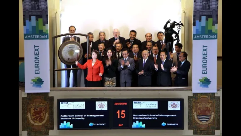 Rotterdam School of Management, Erasmus University(RSM) wordt consequent gerekend tot de top 10 business schools in Europa en tot de top 3 in onderzoek. RSM biedt onderzoek en opleidingen ter verdere bevordering van excellence in alle aspecten van management. RSM is gevestigd in de internationale havenstad Rotterdam en richt zich primair op het ontwikkelen van zakelijke leiders met internationale carrières met gamma bachelor, master, MBA, PhD en executive programma's. Managing Director bij PT Bank Mandiri (persero) Tbk, Fransisca Nelwan Mok, luidt de gong.