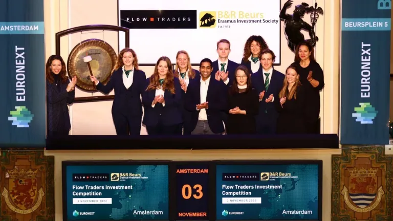 Vandaag is de officiële opening van Flow Traders Investment Competition. Tijdens deze competitie investeren studenteninvesteringsgroepen van B&R Beurs met echt geld. De groep met het hoogste risicogecorigeerd rendement aan het einde van het studiejaar wint de trofee.