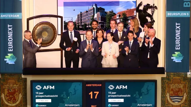 Zij werden hiervoor verwelkomd door Simone Huis in ‘t Veld (CEO Euronext Amsterdam) en René van Vlerken (Hoofd Noteringen Euronext Amsterdam).