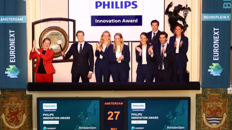 De gong werd vanmorgen geluid door Stijn van Ooijen, Chairman of the Board van Philips Innovation Award.