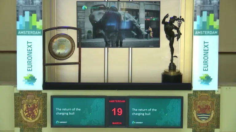 Simone Huis in ’t Veld, CEO van Euronext Amsterdam, luidde de gong ter opening van de Retail Brokers Advisory Committee. Dit deed zij samen met Rauke Wouda, Senior Product Developer van Euronext Amsterdam, Robin van Rijn, Client Relationship Manager van Euronext Amsterdam en in het virtueel bijzijn van enkele commissieleden.