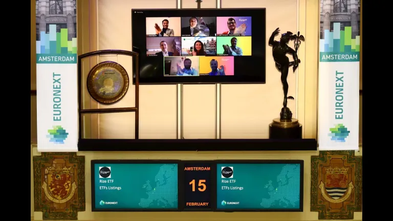Rize ETF viert dat zij vandaag drie ETF’s noteren op Euronext. Jason Kennard, mede-oprichter van Rize ETF, luidde daarom op afstand de gong. Dit deed hij in het bijzijn van onder meer Thomas Weber, ETFs Manager Bedrijfsontwikkeling bij Euronext. De 3 genoteerde ETFs zijn Cybersecurity, Edtech en Sustainable food.