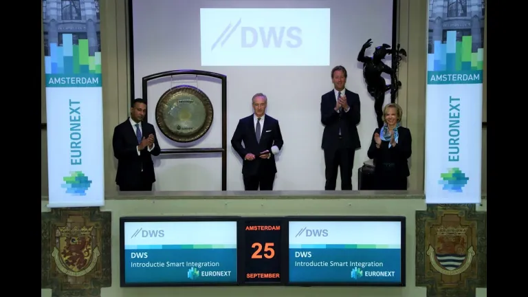Pieter Furnée, Managing Director DWS Benelux, werd vandaag verwelkomd door Simone Huis in ’t Veld, CEO Euronext Amsterdam, en luidde de gong ter introductie van Smart Integration. DWS is een van ‘s werelds grootste vermogensbeheerders en introduceert met Smart Integration een revolutionaire benadering op ESG Integratie.