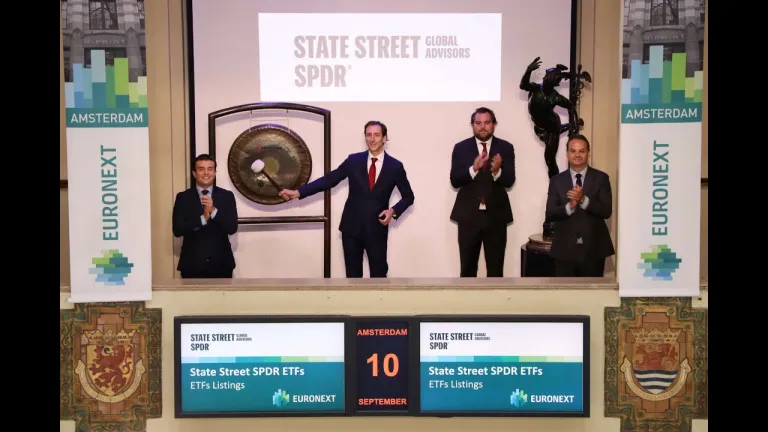 Dirk Donker, Head of Euronext Retail Services, verwelkomde vandaag Philippe Roset, Head of SPDR ETFs Nederland, voor de Listings van SPDR STOXX Global Low Volatility UCITS ETF en SPDR MSCI World Value UCITS ETF op Euronext Amsterdam.