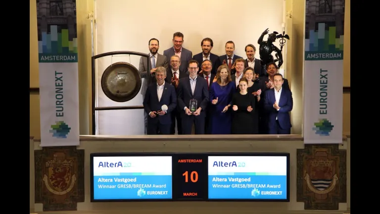 Jaap van der Bijl, CEO Altera Vastgoed, luidde de gong als winnaar van de internationale GRESB/BREEAM Award voor meest duurzame belegger.