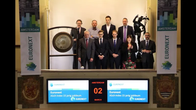 Vandaag bestaat de Amsterdam Smallcap-index vijftien jaar. Namens het Corporate Actions Team van Euronext luidde Roland Vogelaar de gong.