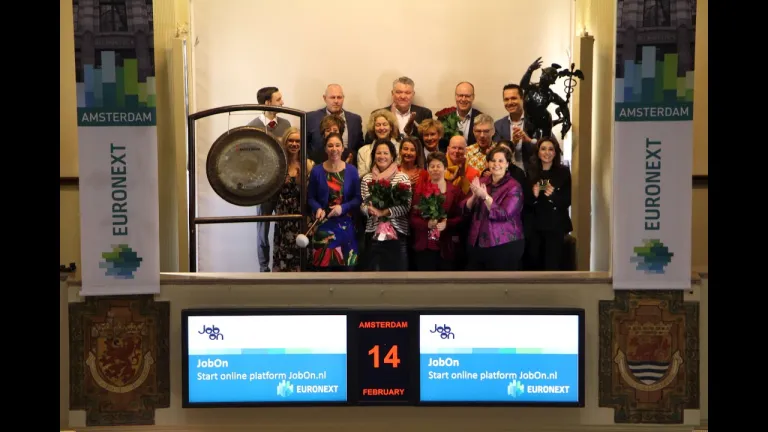 Petra van der Vlught, Communicatiemanager, luidde de gong ter gelegenheid van de start van het nieuwe online platform JobOn.nl.