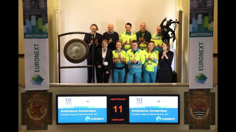 Vandaag is de Europese Dag van het Alarmnummer 112. Astrid Brugman, Hoofd operatie van Ambulance Amsterdam luidde vandaag de gong samen met een team van Amsterdamse ambulancemedewerkers.