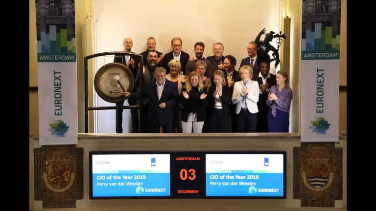 Perry van der Weyden, die vandaag de gong slaat, is CIO van Rijkswaterstaat en onlangs uitgeroepen tot winnaar van de CIO of the Year Award 2019. Hij mag zich daarmee de beste ‘chief information officer’ van Nederland noemen. Van der Weyden dankt de prijs aan de manier waarop hij resultaten weet te boeken binnen de overheid, een complexe omgeving met veel stakeholders.