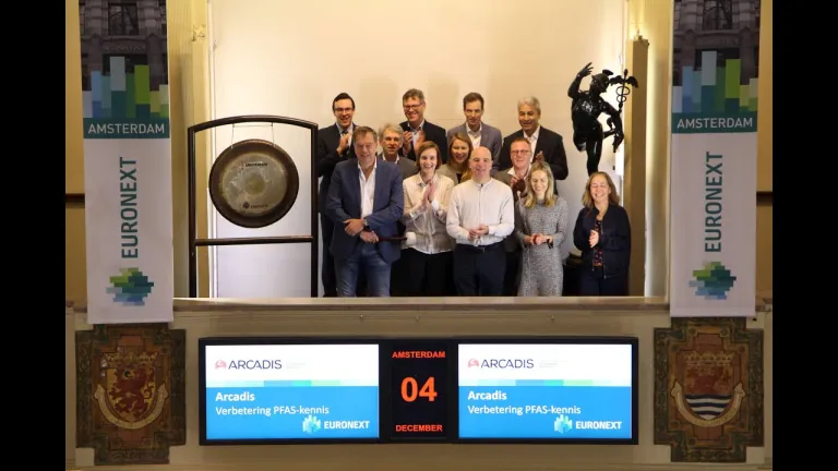 Om dit feit te vieren opent Arcadis milieudirecteur Marc Raessen de effectenbeurs in Amsterdam.