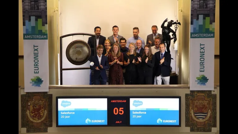 Salesforce bestaat dit jaar 20 jaar. Om dat te vieren openen de initiatiefnemers Eva Heffernan en Tom Keuleneer de handelsdag.