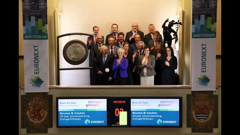 Met een gongslag op Beursplein 5 opent Rob Rouws, medeoprichter van Rouws & Ceulen de beurs. Dit staat in het kader van haar 35-jarig jubileum als zelfstandig vermogensbeheerder en de bijna 20-jarige samenwerking met InsingerGilissen als haar depotbank.