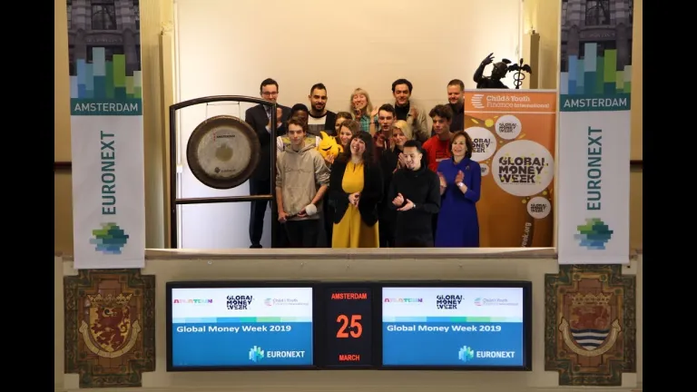 De 8e editie van de Global Money Week (GMW) en de 9e editie van de internationale Aflatoun Day werd bij Euronext Amsterdam door Child & Youth Finance International (CYFI), Aflatoun International, en studenten ingeluid.