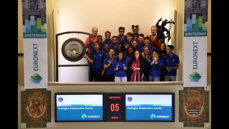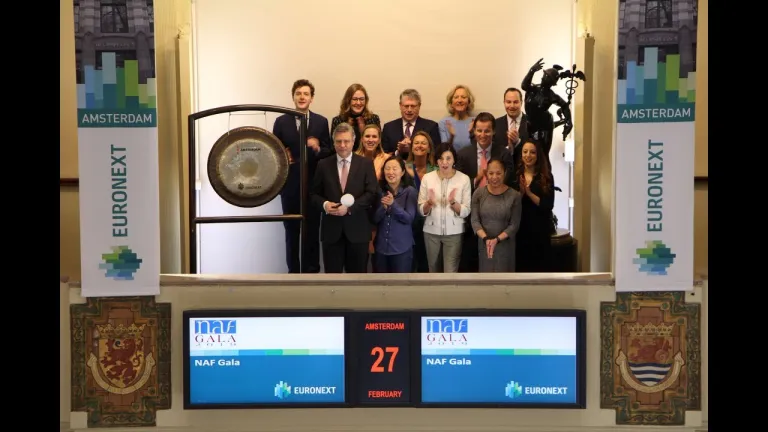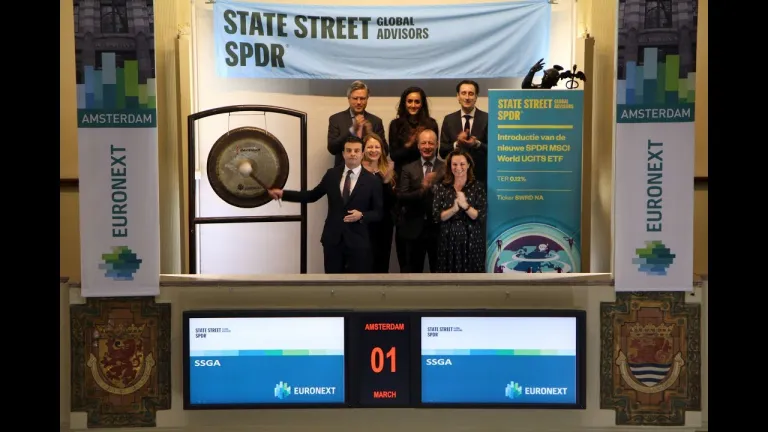 State Street viert de notering van de SPDR MSCI World UCITS ETF op Euronext Amsterdam. Ter ere hiervan luidt Noussair Aatil de gong.