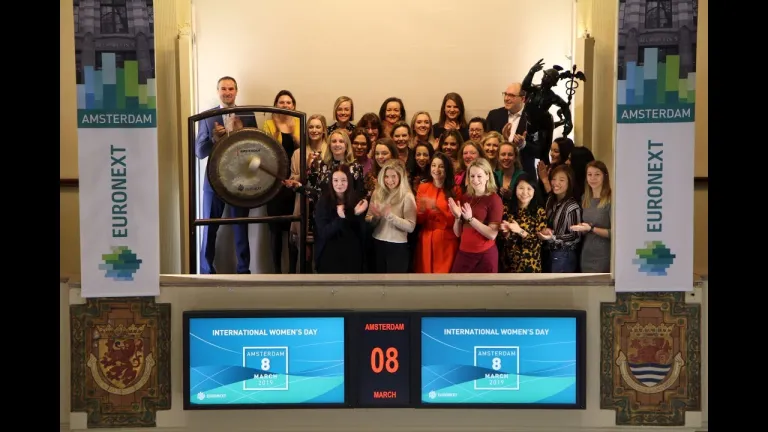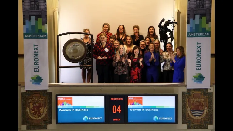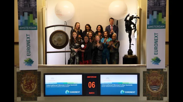 Harper's Bazaar Network Academy en BrandedU, organiseren de International Women's Day Summit 2019 in De Hallen Studio's in Amsterdam. Om dit te vieren openen Miluska van t Lam en Nancy Poleon de Amsterdamse beurs.