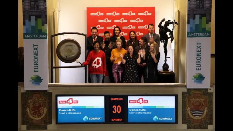 Dance4Life start daarom in december een actiemaand met diverse activiteiten. Doel van deze activiteiten is om zoveel mogelijk donaties binnen te halen voor het internationale lesprogramma Journey4Life. Als start van deze maand opent het goede doel de handel op de Amsterdamse beurs.